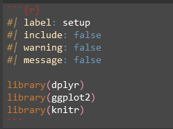 Pour charger les packages et gérer la configuration de votre quarto, il est recommandé d’inclure un premier bloc de code juste après l’en-tête de votre document.